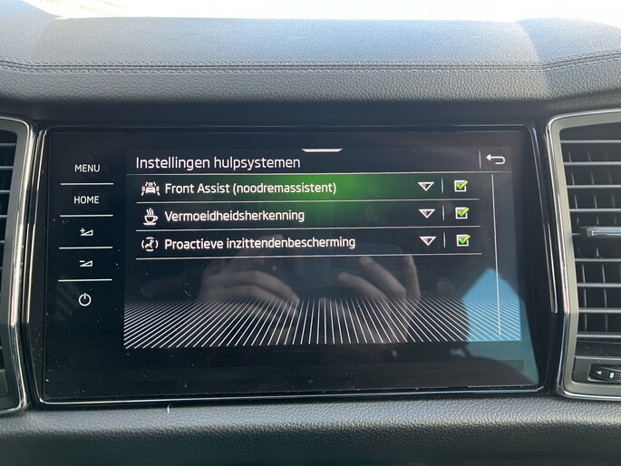 Zoals je mag verwachten van deze ŠKODA Kodiaq is hij uitgerust met een reeks aan actieve veiligheidssystemen. Ook als jouw aandacht even verslapt, blijft de forward collision warning bij de wekker. Dreigt er een botsing met een voor- of tegenligger, dan waarschuwt het systeem direct. Bij concentratieverlies en toenemende vermoeidheid van de bestuurder, geeft de auto een sterk signaal om je weer bij de les te houden. Hierdoor kunnen veel ongelukken voorkomen worden. Ook helpen het hill hold functie, autonoom remsysteem en bandenspanningcontrolesysteem, jouw rit tot een veilige rit te maken.