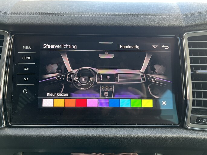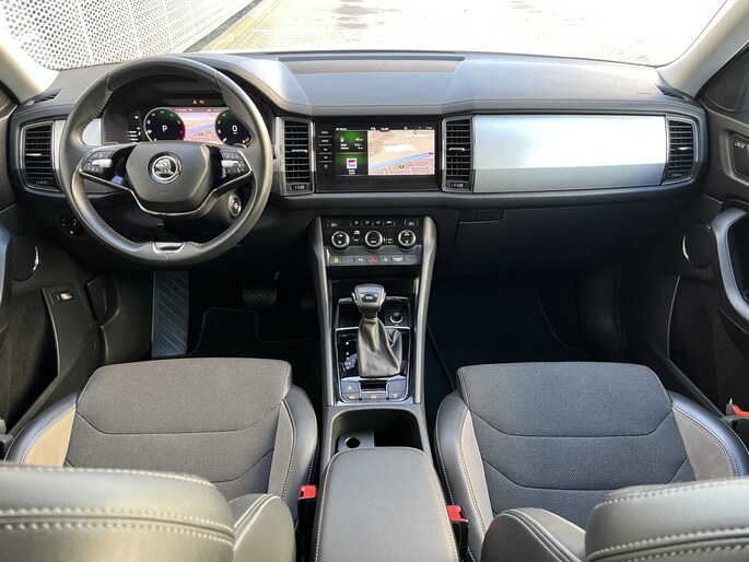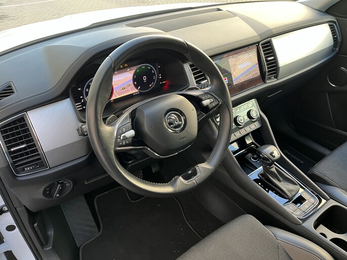 Stel de interface voor jouw cockpit naar wens in met het digitale dashboard van deze auto. Een handige optie is de achteruitrijcamera. Achteruitrijden, inparkeren en manoeuvreren gaat gemakkelijker dan ooit. Mocht zich een probleem voordoen, dan krijg je via remote services op je smartphone te zien wat er precies aan de hand is, waar je ook bent. Ook het geluid aan boord is top-of-the-line. Het high performance audiosysteem levert superieure prestaties. Telefoon onderweg aan de lader? Daar komt geen kabeltje aan te pas, want deze ŠKODA Kodiaq is voorzien van een draadloze oplaadmogelijkheid voor telefoons. De uitrusting van deze auto is met dashboard met spraakbediening, full map navigatiesysteem, WIFI-hotspot, achteropkomend verkeer waarschuwing, electronic climate control en schakelpaddles aan het stuur behoorlijk compleet.