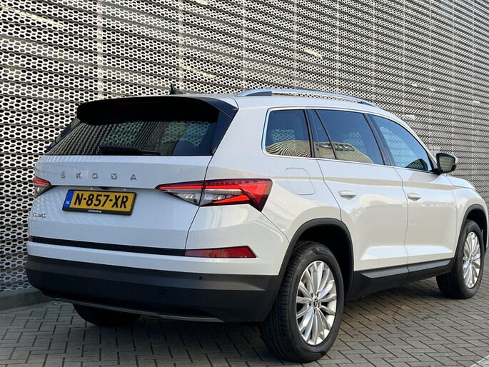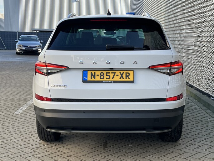Veelzijdigheid en doordacht design staan aan de basis van deze ruime ŠKODA Kodiaq. De auto is van het bouwjaar 2022 en is van de eerste eigenaar. Deze stoere auto wordt aangedreven door een benzinemotor en een automatische transmissie. De elektrische achterklep opent met een druk op de knop, zodat jij gemakkelijk toegang heeft tot de bagageruimte. Koplampen voorzien van de allernieuwste lichttechniek, matrix LED-verlichting. Tot de uitrusting behoren ook 18 inch lichtmetalen velgen, halflederen bekleding, dakspoiler, in hoogte verstelbare voorstoelen, donker getint glas achter en in delen neerklapbare achterbank.