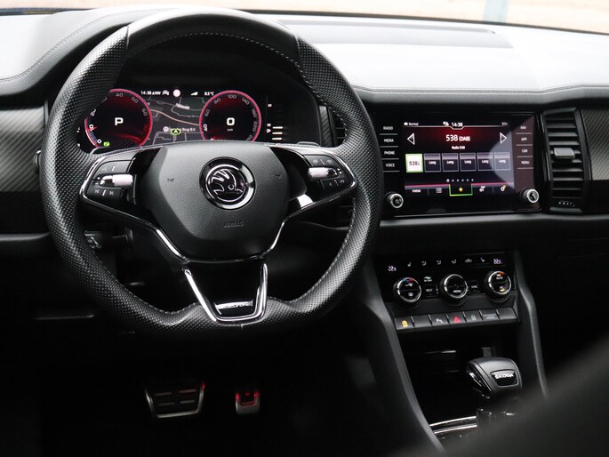 Omdat rijden een plezier mag zijn, staat deze Skoda Kodiaq enthousiast te glimmen in de showroom. Technisch in topconditie, strak in de lak... echt een droomauto! Hij heeft een benzinemotor en een automatische transmissie. Stoelverwarming hoort ook bij de uitrusting van deze auto. De elektrisch bedienbare achterklep opent met een druk op de knop. De verlichting van de koplampen geeft het gevoel dat het altijd dag is. De slimme matrix LED-technologie past zich aan bij tegenliggers, zonder verlies van lichtkwaliteit. Bij de zeer complete uitrusting van deze auto behoren ook 19 inch lichtmetalen velgen, dakspoiler, donker getint glas achter, in delen neerklapbare achterbank, LED-achterlichten en verstelbare lendensteunen.