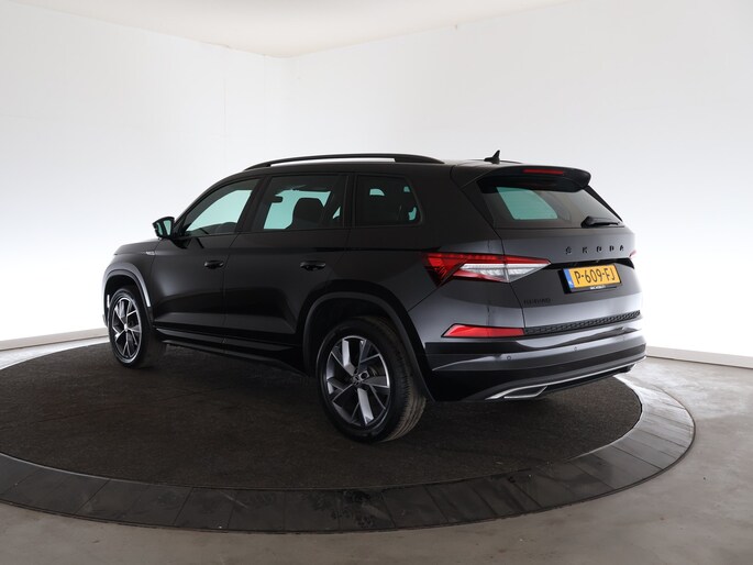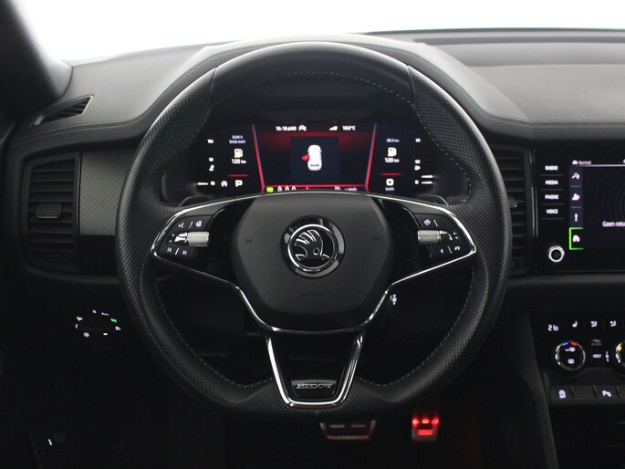 Je ziet het niet, maar de nieuwigheid is er nét van af. En dat maakt deze jonge ŠKODA Kodiaq heel betaalbaar. De krachtige benzinemotor van deze auto is gekoppeld aan een automatische transmissie. Voorin is het 's winters genieten met de verwarmbare voorstoelen voor zowel bestuurder als bijrijder. Mooi om te zien en heerlijk om in te zitten zijn de sportstoelen, die u onderweg optimale ondersteuning geven. De elektrische achterklep opent met een druk op de knop, zodat u gemakkelijk toegang heeft tot de bagageruimte. De geavanceerde matrix LED-verlichting in de koplampen levert maximaal helder zicht en past zich subtiel aan zodra er een tegenligger komt. Zonder lichtkwaliteitsverlies! In deze auto profiteert u onder andere ook van: 19 inch lichtmetalen velgen, halflederen bekleding, dakspoiler, donker getint glas achter, in delen neerklapbare achterbank en LED-achterlichten.