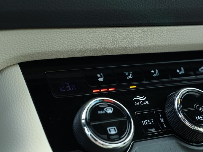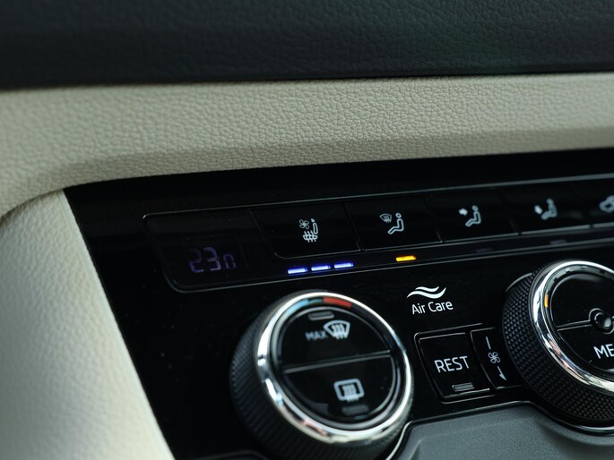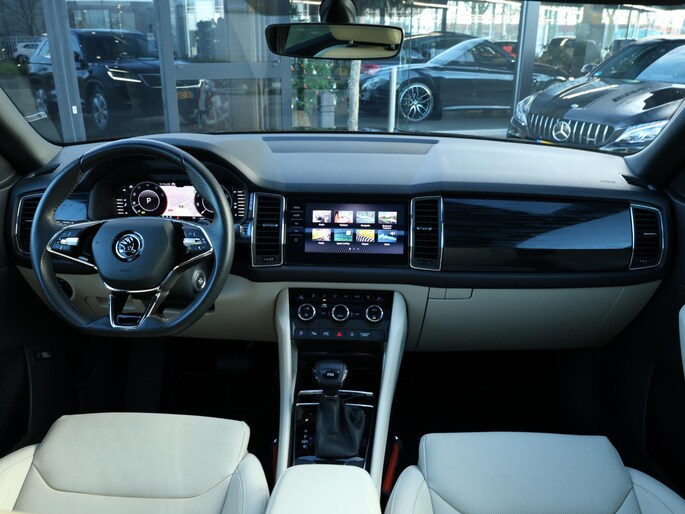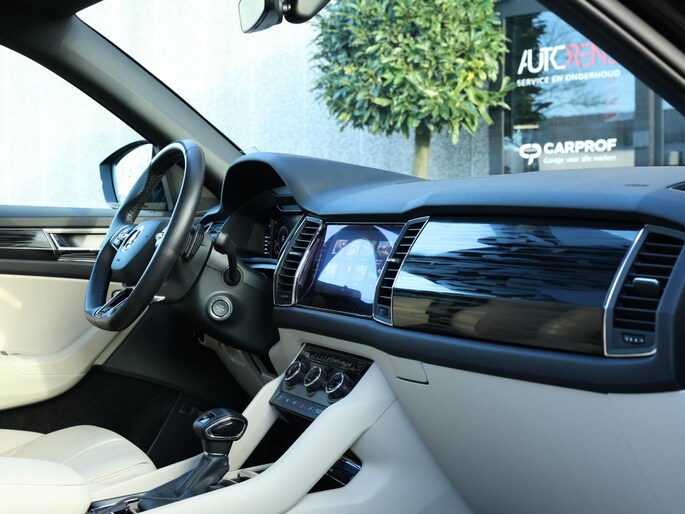 Zo is deze knots volle Skoda Kodiaq onder andere voorzien van: Elektrisch glazen panoramadak, Lederen bekleding, Elektrisch verstelbare voorstoelen met geheugenfunctie, Stoelventilatie, Stoelverwarming, 360 graden camera, Virtual cockpit, Canton geluidsinstallatie, Wegklapbare trekhaak, Keyless entry/go, Privacy glas, Zwarte hemelbekleding, Full LED verlichting, Automatisch inparkeren, Climate control, etc.