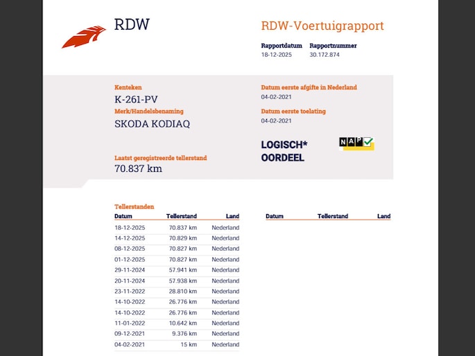 Kilometerstand gecontroleerd