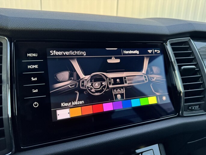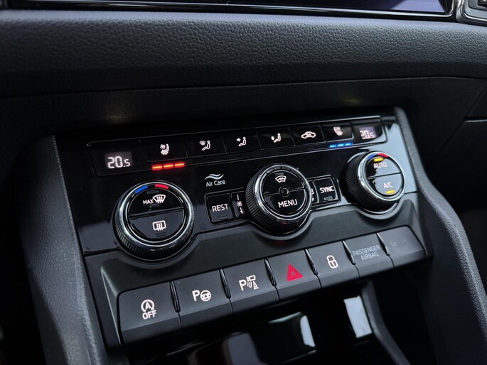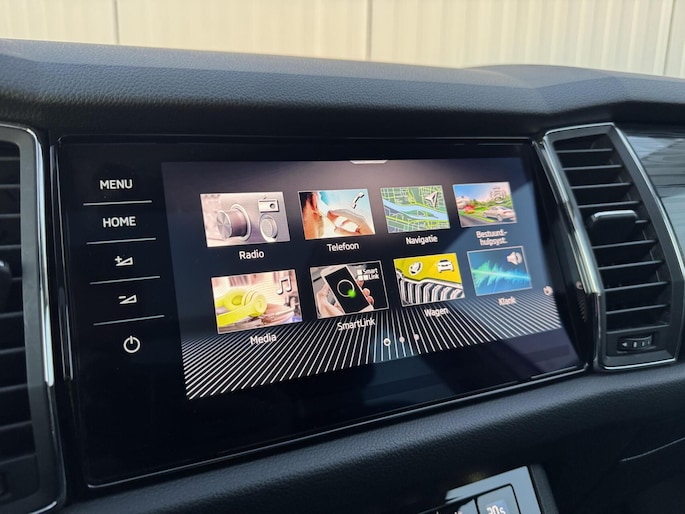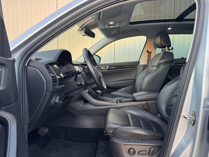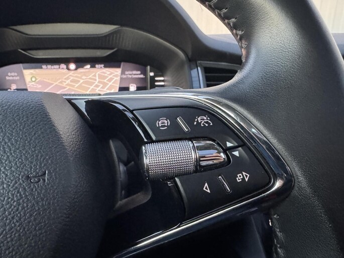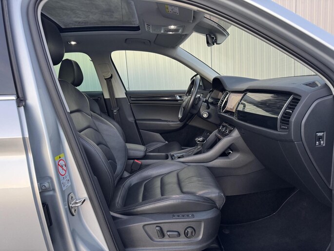 Op het gebied van veiligheid en ondersteuning is deze Kodiaq zeer compleet uitgerust met adaptieve cruise control, rijstrooksensor, grootlichtassistent en zonneschermen in de zijruiten, wat het rijden ontspannen en veilig maakt voor zowel bestuurder als passagiers.