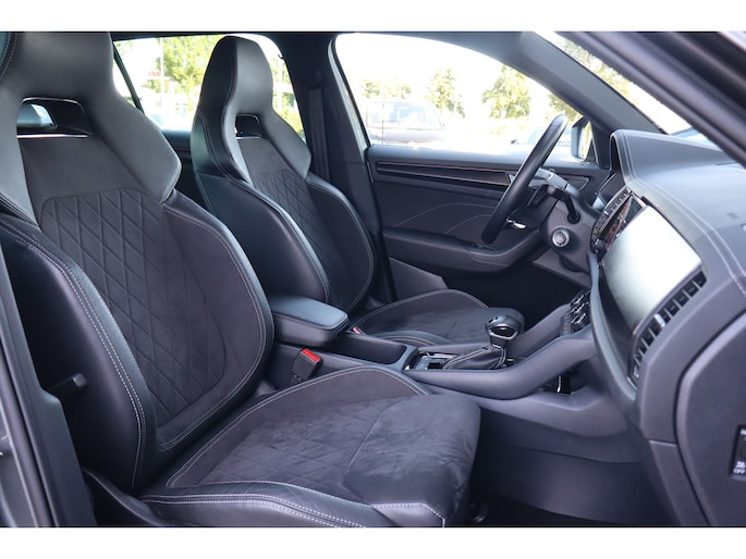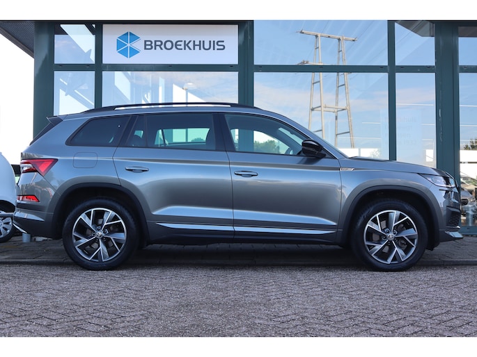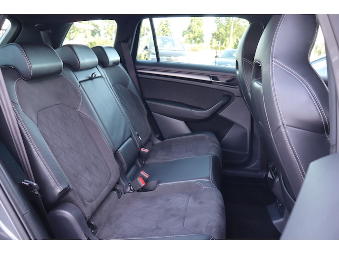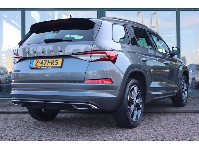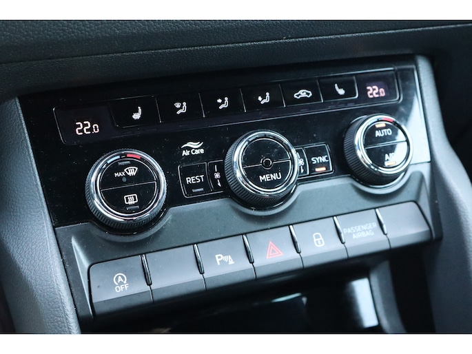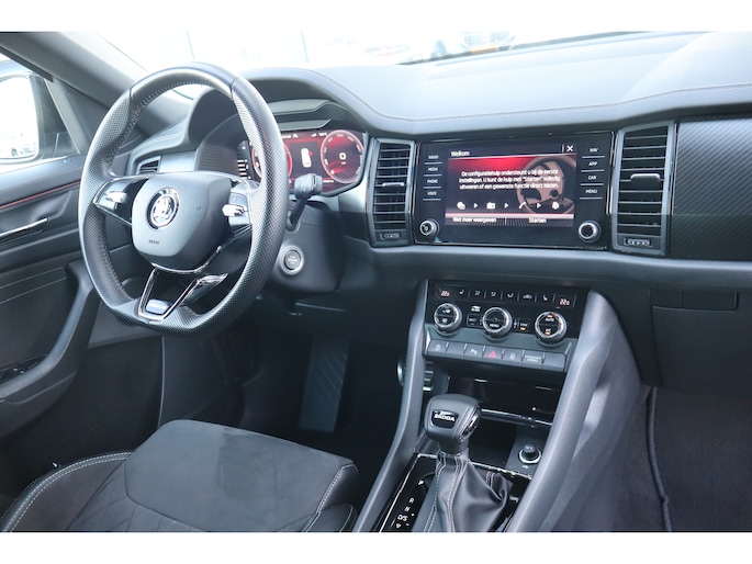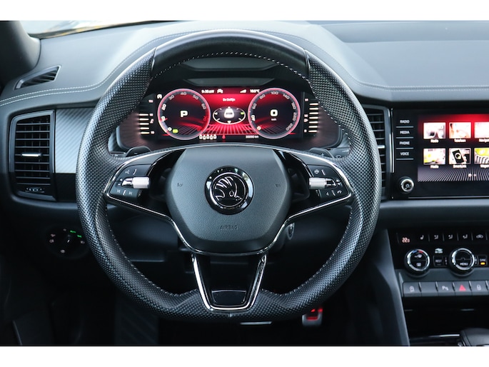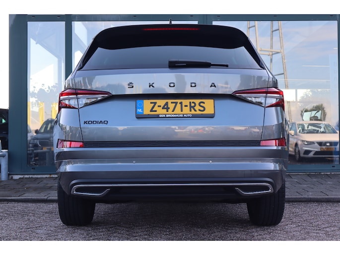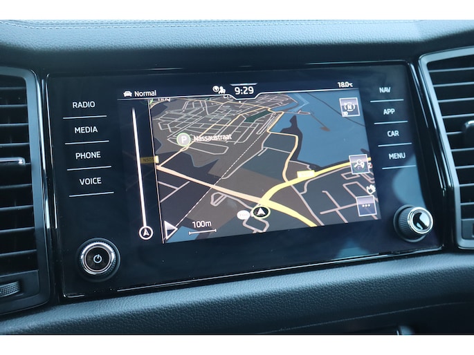 Hij is stijlvol en comfortabel, deze Škoda Kodiaq, en hij is ontworpen om u veilig en comfortabel te laten rijden onder alle omstandigheden. Met zijn benzinemotor en automatische transmissie is dit een prima auto voor nog vele kilometers. Op koude en donkere dagen zijn de verwarmbare voorstoelen een uitkomst. De sportstoelen houden u en uw passagier stevig vast tijdens een snelle rit, maar bieden ook altijd comfortabele ondersteuning. De koplampen met matrix LED-verlichting geven daglichtkwaliteit zonder tegenliggers te hinderen. In deze Škoda profiteert u onder andere ook van: 19 inch lichtmetalen velgen, dakspoiler, extra getint glas, in delen neerklapbare achterbank, LED-achterlichten en verstelbare lendensteunen. Met behulp van de achteruitrijcamera kunt u zo strak inparkeren als u maar wilt! Fijn, zo'n trekhaak. Maar niet constant nodig. Daarom heeft deze Škoda Kodiaq een elektrisch inklapbare trekhaak. Waar u zelf ook bent, u staat altijd in contact met de auto via de app op uw smartphone. Zo controleert u uiteenlopende functies, ook op afstand. In deze Kodiaq vindt u niet alleen schakelaars op het stuur om het navigatiesysteem te bedienen en het audio-installatiesysteem met DAB-ontvangst, maar er is ook spraakbediening. Smartphones die zonder snoer kunnen opladen halen simpel een volle accu via de draadloze oplaadmogelijkheid voor telefoons. En dan is deze auto ook nog eens voorzien van achteropkomend verkeer waarschuwing, electronic climate control, sportstuur met schakelpaddels, regensensor, cruise control en automatisch dimmende buitenspiegels. De nieuwste veiligheidssystemen komen in deze Škoda Kodiaq samen. Het forward collision warning-systeem waarschuwt indien een botsing dreigt met een voorliggend of tegemoetkomend voertuig. Een belangrijk veiligheidssysteem in deze auto is de vermoeidheidsherkenning, die u een duidelijk signaal geeft wanneer u achter het stuur in slaap dreigt te vallen. De veiligheid van deze auto wordt verder verhoogd door frontale botsbescherming en bandenspanningcontrolesysteem. Hebt u interesse in deze auto? Neem nu contact met ons op en we zetten hem klaar voor een proefrit.