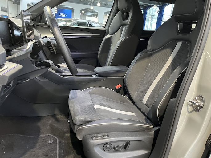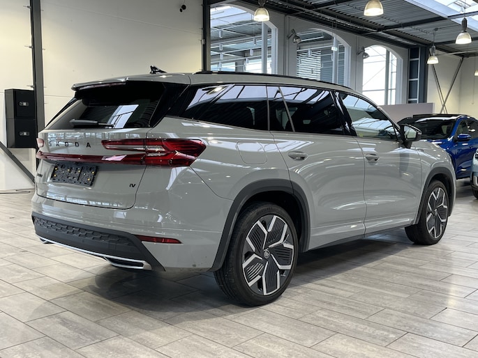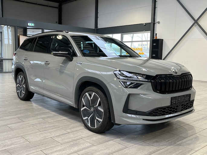 De Sportline uitvoering is de sportieve versie van de Kodiaq. Dat is aan de buitenkant meteen te zien aan de speciale wielen en zwarte accenten. De spiegelkappen, dakrails en grille zijn gelakt zwart. Het geeft een mooi contrast met de donkergrijze buitenkleur. In de grille zitten LED lampen die de auto in het donker extra uitstraling geven. Ook het interieur is bijzonder. De auto heeft zeer fraaie sportstoelen. De bestuurdersstoel is elektrisch verstelbaar en kent 3 geheugenstanden. Zo kunnen verschillende bestuurders hun favoriete positie opslaan. Het dashboard, deurpanelen en middenconsole zijn afgewerkt met alcantara. Het geeft een zeer luxe uitstraling. De hemelbekleding is heel donkergrijs. Beide voorstoelen èn de achterbank zijn elektrisch te verwarmen. Ook het stuurwiel is verwarmbaar. Zo is het in de winter vanaf de eerste meters comfortabel. Het is zelfs mogelijk om de auto op afstand voor te verwarmen of te koelen. De klimaatregeling is digitaal in te stellen. De passagiers op de achterbank hebben hiervoor een eigen paneel. Bovendien zijn zowel voor als achter 2 USB aansluitingen voor de elektronica. Voor is het zelfs mogelijk om 2 mobiele telefoons tegelijk draadloos op te laden.
