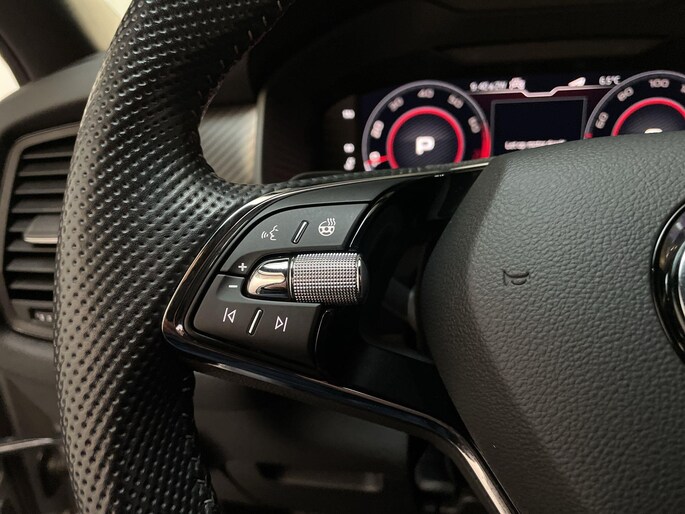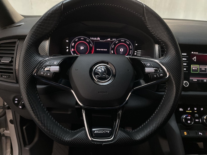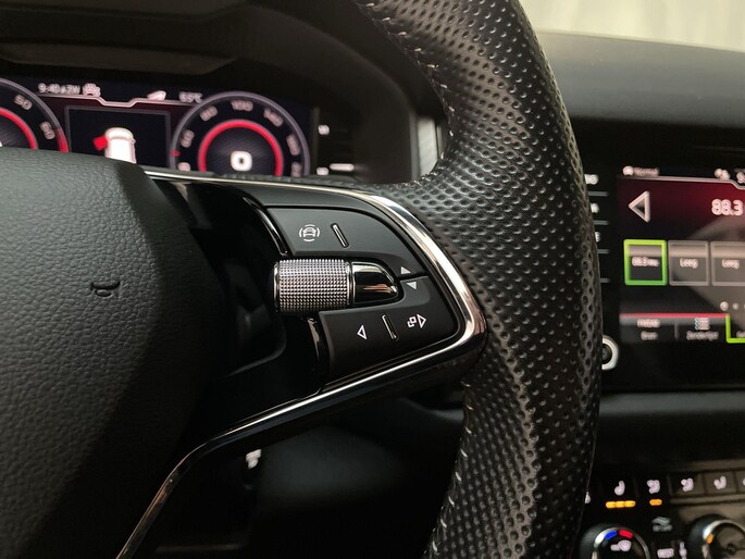 Ervaar de wonderen van de digitale mobiliteitswereld waarbij alles wat jij wenst op het digitale dashboard verschijnt. 'Boem is ho'? Niet met deze achteruitrijcamera. U ziet achter net zo goed als voor en krijgt een duidelijk geluidssignaal! Je ziet hem niet, maar hij is er wel: de elektrisch inklapbare trekhaak. Zoals je van zo'n jonge auto mag verwachten, zijn hier ook de geavanceerde remote services aanwezig. Simpelweg met een app op uw smartphone controleer je op afstand de status van de auto en bedien je diverse functies. In deze Kodiaq vind jij niet alleen schakelaars op het stuur om het navigatiesysteem te bedienen en het audiosysteem met DAB-ontvangst, maar er is ook spraakbediening. Ook achteropkomend verkeer waarschuwing, electronic climate control, sportstuur met schakelpaddels, draadloos opladen, regensensor en cruise control horen tot de voorzieningen op deze auto.