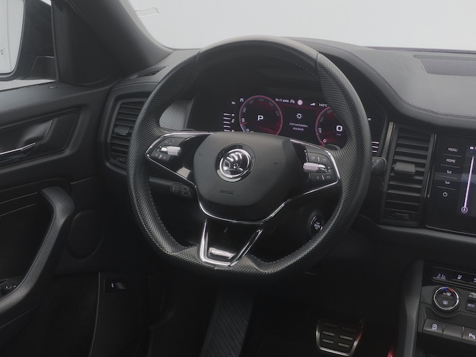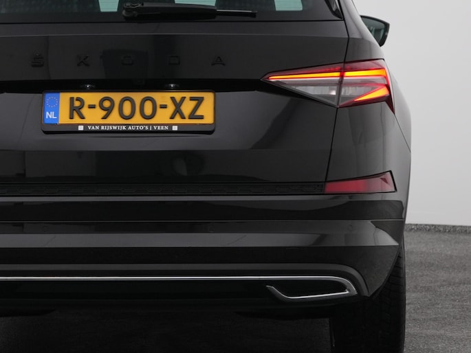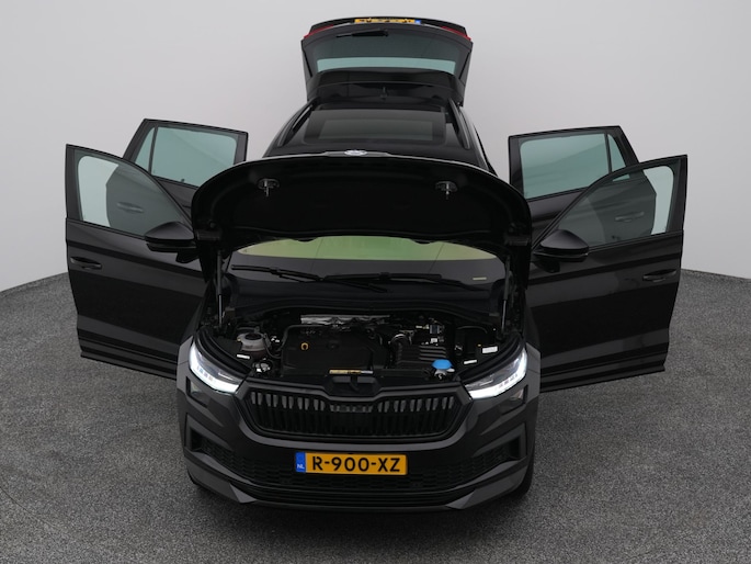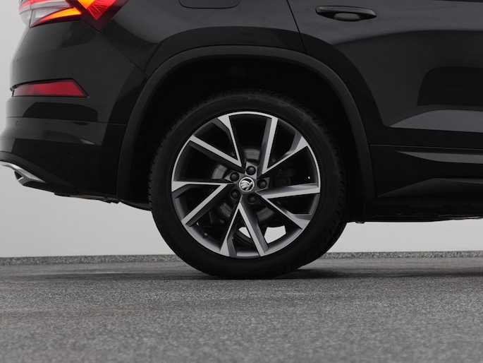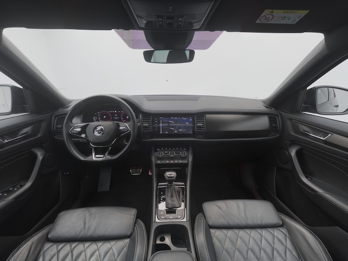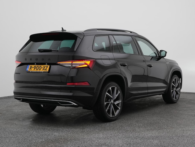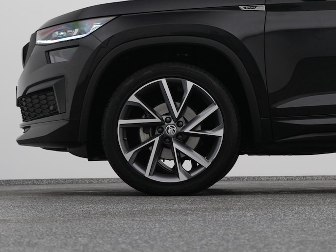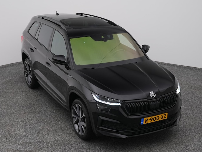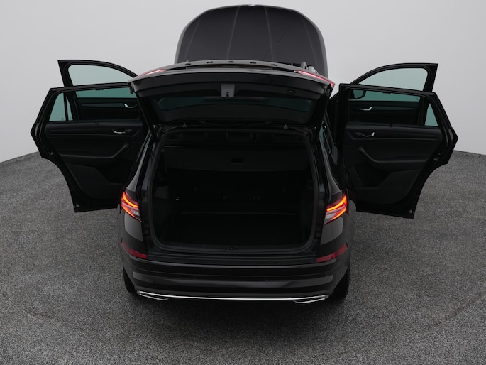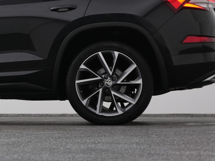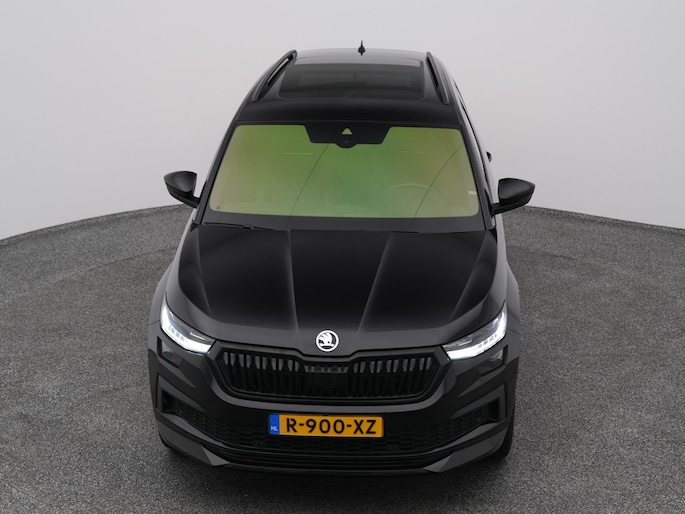 Techniek en design helemaal van nu. Kilometerstand van gisteren. Deze bijna-nieuwe ŠKODA Kodiaq heeft z'n nestveren afgeschud en is klaar om te vliegen. De krachtige benzinemotor van deze auto is gekoppeld aan een automatische transmissie. Maximaal comfort en stijl krijgt u dankzij het lederen interieur. U past de stoelen moeiteloos aan, ze zijn elektrisch in te stellen en hebben bovendien een geheugen. Wat een licht geeft dat glazen elektrisch bedienbare panoramadak. De achterklep opent automatisch met een druk op de knop. Handig als u met volle handen staat. De koplampen zijn voorzien van de allernieuwste lichttechnologie: matrix LED-verlichting. Natuurlijk behoren 19 inch lichtmetalen velgen, zwarte hemelbekleding, dakspoiler, donker getint glas achter, in delen neerklapbare achterbank en LED-achterlichten ook tot de uitrusting van deze complete auto.