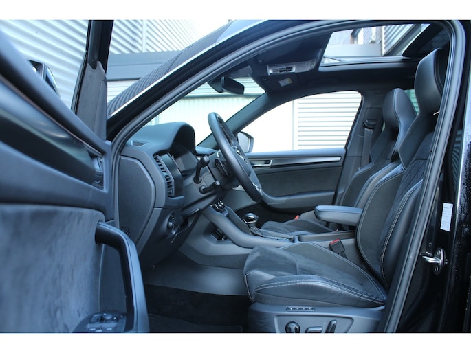 U rijdt gemakkelijk, comfortabel en zonder zorgen met deze ŠKODA Kodiaq. De krachtige benzinemotor van deze auto is gekoppeld aan een automatische transmissie. Deze ŠKODA Kodiaq heeft verwarmbare voorstoelen, voor zowel bestuurder als bijrijder. De strakke sportstoelen hebben niet alleen de looks, maar bewijzen ook hun functie als u wat meer vraagt in de uitdagende bochten. Dat noemen ze nou een ruimtelijk effect: het elektrisch bediende glazen panoramadak. De achterklep opent automatisch met een druk op de knop. Handig als u met volle handen staat. Met z'n allen erop uit - dat kan in dit geval letterlijk ruim opgevat worden, want de derde zitrij is echt een aanwinst. Ook 20 inch lichtmetalen velgen, LED koplampen, dakspoiler, donker getint glas achter, in delen neerklapbare achterbank en LED-achterlichten zijn aan boord.