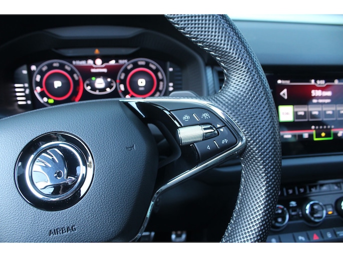 Slim, efficiënt, veilig en goed geïnformeerd rijden? Het digitale dashboard vertelt u alles wat u wilt weten. Zodra u naar de 'R' schakelt, gaat de achteruitrijcamera in werking en heeft u een perfect zicht op alles wat zich achter de auto afspeelt. De elektrisch inklapbare trekhaak is onzichtbaar gemonteerd. Met een eenvoudige beweging verschijnt de trekhaak zodra u deze nodig hebt. Vergeten af te sluiten? Bandenspanning onvoldoende? De speciale app geeft u direct een seintje met behulp van Connected Services. In deze auto klinkt uw favoriete muziek nog beter dankzij het high performance audiosysteem. De ŠKODA is standaard voorzien van: dashboard met spraakbediening, full map navigatiesysteem, WIFI-hotspot, achteropkomend verkeer waarschuwing, electronic climate control en sportstuur met schakelpaddels.