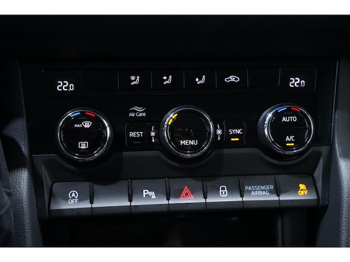 De achteruitrijcamera geeft u duidelijk zicht op de ruimte achter de auto. Een aanhanger of caravan kan ook mee, dankzij de elektrisch inklapbare trekhaak Met uw smartphone maakt u overal contact met de auto. Remote services geven direct inzicht in uiteenlopende functies en zijn op afstand te activeren. Deze Skoda is voorzien van spraakbediening voor het navigatiesysteem en voor het audio-installatiesysteem met DAB-ontvangst. Maar u kunt ook de knoppen op het stuur gebruiken. Telefoonaccu in het rood? Laad 'm simpel op met de draadloze oplaadmogelijkheid voor telefoons. Ook is de Skoda uitgerust met: achteropkomend verkeer waarschuwing, electronic climate control, regensensor, cruise control, automatisch dimmende buitenspiegels en lederen stuur en versnellingspook.