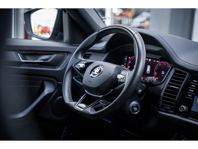 Zeer complete en sportief uitgevoerde Škoda Kodiaq Sportline met krachtige en bovenal efficiente 1.5 TSI motor (150 pk). Deze origineel Nederlandse auto is afkomstig van de eerste eigenaar, volledig dealeronderhouden en voorzien van NAP. Dankzij de rijke uitrusting en luxe afwerking is dit de ideale SUV voor zowel dagelijks gebruik als lange reizen.