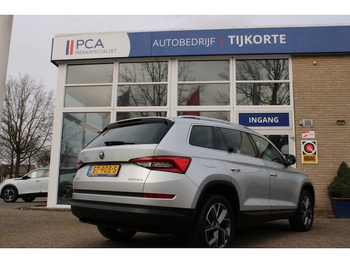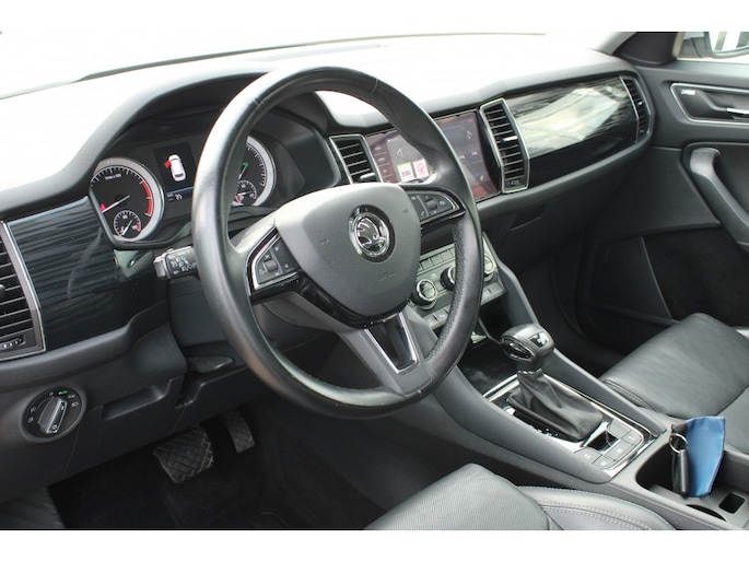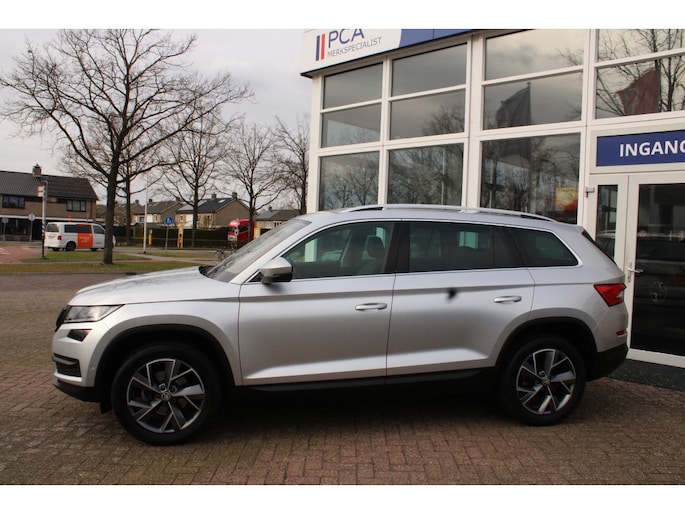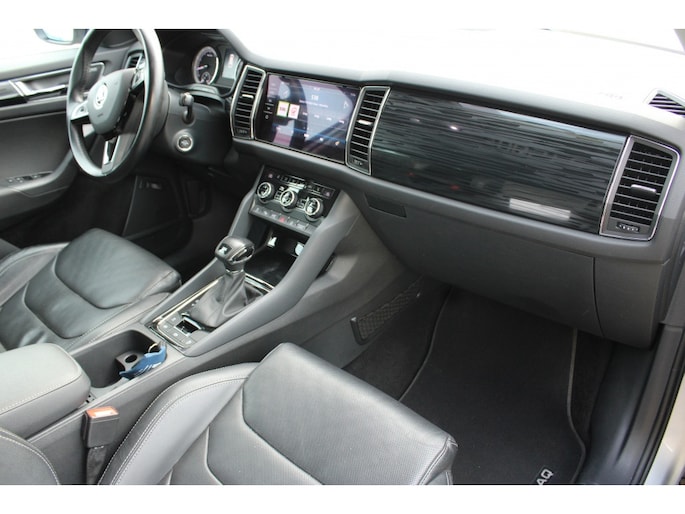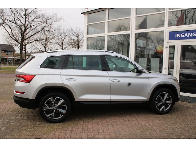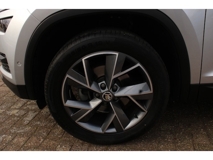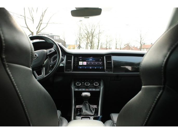 -De Škoda Kodiaq heeft een krachtig design, hij toont zelfverzekerd maar niet arrogant. Het is die uitstraling die deze auto zo aantrekkelijk maakt. Zijn rijkwaliteiten zijn navenant: achter het stuur van deze auto bent u iedere verkeerssituatie de baas, dankzij zijn krachtige motor en uitgekiende wegligging. Veel leuke extra's heeft deze auto. Om maar wat te noemen: de elektrisch bedienbare achterklep en het stijlvolle lederen interieur. In de verwarmbare voorstoelen zitten is elke keer een welkom gevoel. Rijden met pit? Geen punt! De sportstoelen geven steun en stevigheid! Niet alleen u, maar ook uw passagiers zitten goed, dankzij de verwarmde achterbank. Tot de voorzieningen van deze auto behoren 19 inch lichtmetalen velgen, set winterbanden, LED koplampen, trailer assistent, dakspoiler en in delen neerklapbare achterbank.