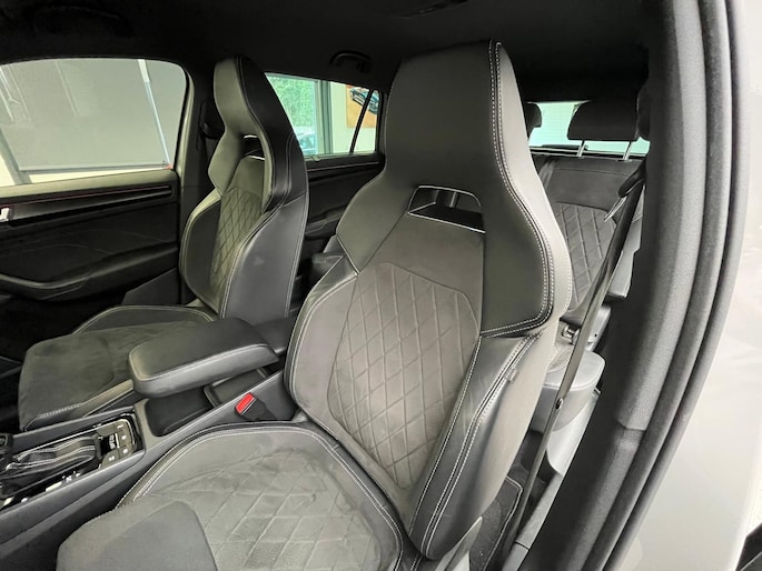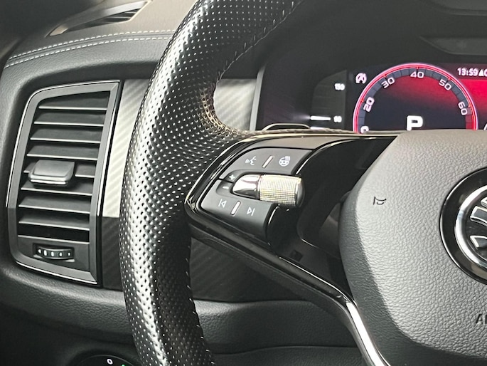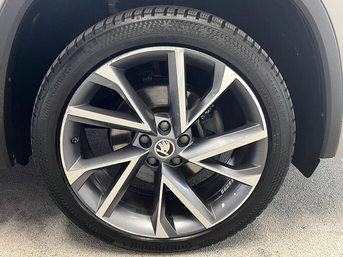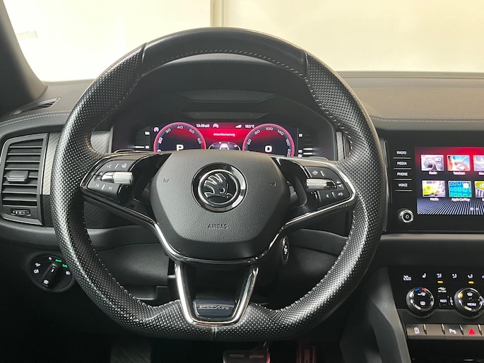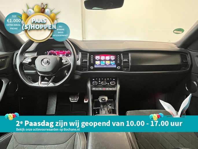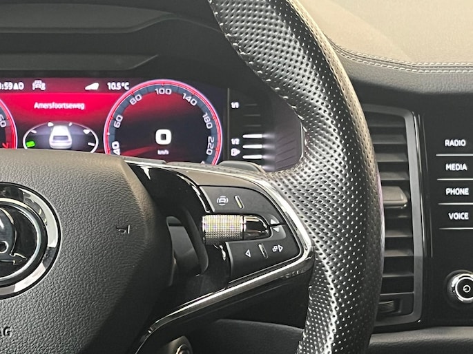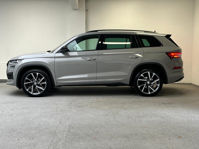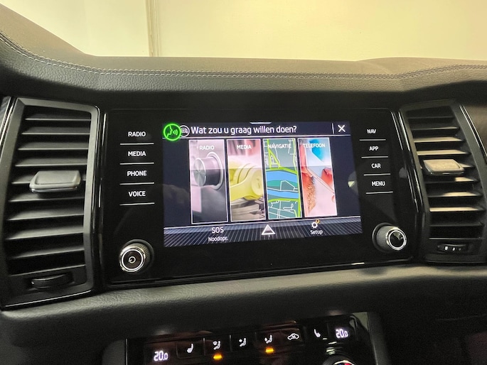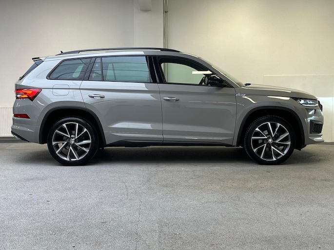 Neem plaats in de cockpit, start de motor en voel het vermogen. Met deze sportieve Skoda Kodiaq hebt u altijd de controle. Met zijn benzinemotor en automatische transmissie is dit een prima auto voor nog vele kilometers. Voorzien van zowel stoelverwarming, verwarmbare achterbank alsook een verwarmbaar stuur, zorgt dit voertuig voor uitstekend comfort tijdens koude dagen. Sportief rijden stelt eisen aan een stevige zitpositie voor rijder en bijrijder. Vandaar de strakke sportstoelen! De elektrische achterklep opent met een druk op de knop, zodat u gemakkelijk toegang heeft tot de bagageruimte. De verlichting van de koplampen geeft het gevoel dat het altijd dag is. De slimme matrix LED-technologie past zich aan bij tegenliggers, zonder verlies van lichtkwaliteit. De uitmonstering van deze auto wordt gecompleteerd door onder meer 20 inch lichtmetalen velgen, dakspoiler, donker getint glas achter, in delen neerklapbare achterbank, LED-achterlichten en verstelbare lendensteunen.
