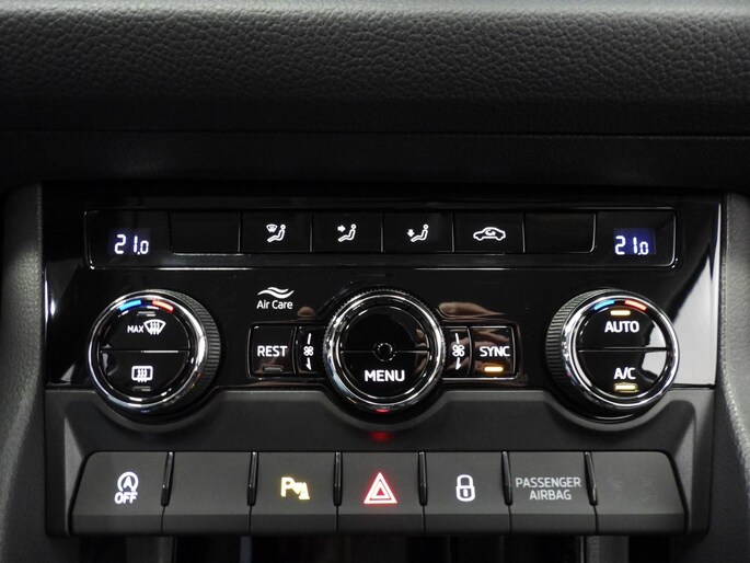 In de Skoda Kodiaq heeft uw veiligheid en die van uw omgeving prioriteit. Het forward collision warning-systeem waarschuwt indien een botsing dreigt met een voorliggend of tegemoetkomend voertuig. Met de vermoeidheidsassistent bent u ook op lange ritten veilig op pad. Het systeem geeft een waarschuwing zodra het tijd is voor een pauze. In deze Skoda vinden we verder een frontale botsbescherming en bandenspanningcontrolesysteem.