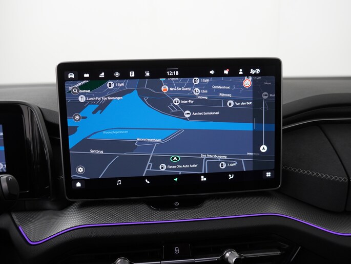 Centraal op het dashboard, onder handbereik ziet u het grote touchscreen. Naast navigatie en bluetooth is het ook mogelijk om via Apple Carplay of Android Auto uw telefoon te koppelen. U kunt dan apps als Google Maps of Spotify op het grote scherm bedienen. Zo hoeft u nooit meer de navigatiekaart te updaten en staat u nooit meer onnodig lang in de file door zeer nauwkeurige verkeersinformatie. Het koppelen gaat draadloos zodat u de telefoon niet meer uit uw broekzak of jaszak hoeft te halen.