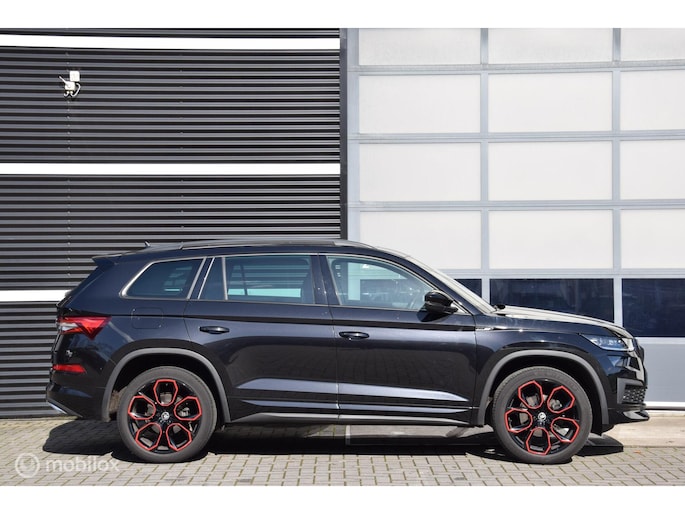 Een zonder onderscheidende Skoda Kodiaq Sportline dankzij de 20inch Extreme sportvelgen, volledig lederen sportstoelen en panoramadak!