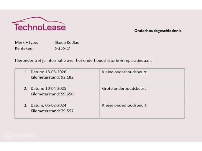 - De volledige onderhoudshistorie is bij ons bekend en gedocumenteerd.