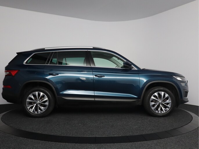 Zijn dynamische uiterlijk maakt al direct duidelijk wat voor rijervaring je van deze ŠKODA Kodiaq mag verwachten: pure sportiviteit. De auto heeft een opmerkelijk lage kilometerstand van slechts 28898 Een viercilinder benzinemotor en een automatische transmissie verzorgen de aandrijving van deze SUV. De elektrisch bedienbare achterklep opent met een druk op de knop. Koplampen voorzien van de allernieuwste lichttechniek, matrix LED-verlichting. In deze ŠKODA profiteer jij onder andere ook van: 18 inch lichtmetalen velgen, halflederen bekleding, dakspoiler, in hoogte verstelbare voorstoelen, in delen neerklapbare achterbank en LED-achterlichten.