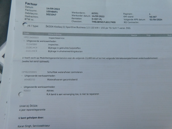 Kilometerstand gecontroleerd