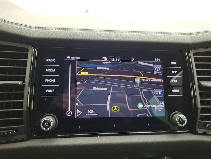 Voor het overzicht tijdens iedere rit is deze ŠKODA Kodiaq voorzien van een gemakkelijk afleesbaar digitaal dashboard. Een vergeten muurtje, een verborgen paaltje? Dat gebeurt niet meer, dankzij de achteruitrijcamera. Pech of storing, altijd vervelend. Maar met Connected Services weet je direct wat eraan scheelt. En dus ook wat er moet gebeuren. Prettig, altijd weten waar je moet zijn en hoe lang de rit nog duurt met het navigatiesysteem. De achteropkomend verkeer waarschuwing bewaakt de afstand tot achterliggers en geeft een signaal als er te weinig ruimte is. Deze auto is voorzien van WIFI-hotspot, electronic climate control, draadloos opladen, DAB ontvangst, regensensor en cruise control.