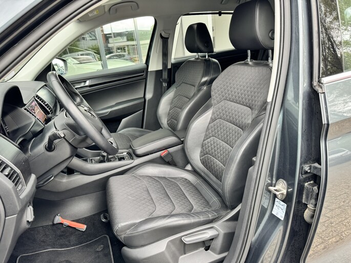 Met zijn kenmerkende hoge silhouet straalt deze SUV vastberadenheid uit, maar ook de zekerheid dat hij altijd zijn weg vindt, waar u ook naartoe rijdt. Met zijn benzinemotor en handgeschakelde zesversnellingsbak is deze ŠKODA een prettige auto om te rijden. Op koude en donkere dagen zijn de verwarmbare voorstoelen een uitkomst. De verlichting van de koplampen geeft het gevoel dat het altijd dag is. De slimme matrix LED-technologie past zich aan bij tegenliggers, zonder verlies van lichtkwaliteit. Tot de uitrusting van deze ŠKODA behoren ook halflederen bekleding, dakspoiler, in delen neerklapbare achterbank, LED-achterlichten en verstelbare lendensteunen. Over het digitale dashboard is goed nagedacht. Alle belangrijke functies binnen en buiten in één oogopslag. U ziet geen paaltje meer over het hoofd dankzij de achteruitrijcamera. Als u regelmatig met een caravan of aanhanger rijdt, is de elektrisch inklapbare trekhaak een uitkomst. Communiceren met uw auto? Dat gaat via remote services. Met uw smartphone maakt u waar dan ook contact om allerlei functies te checken of te activeren. Terwijl het full map navigatiesysteem de ideale route voor u uitstippelt, geniet u van de kwaliteit van het audiosysteem met DAB-ontvangst. De bediening is bovendien gemakkelijk via knoppen op het stuur of via spraak. En dan is deze auto ook nog eens voorzien van WIFI-hotspot, achteropkomend verkeer waarschuwing, electronic climate control, draadloos opladen, regensensor en cruise control.