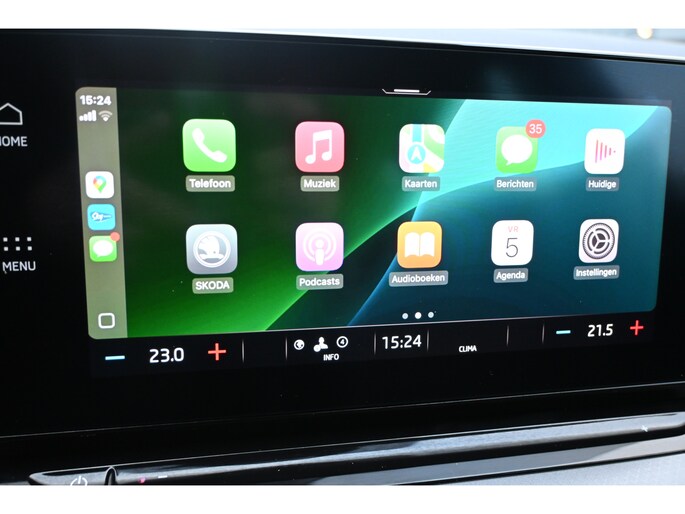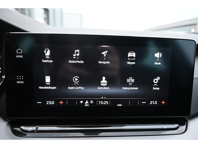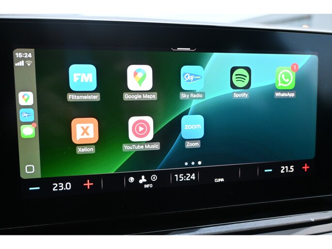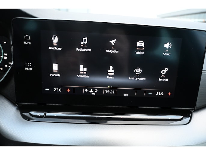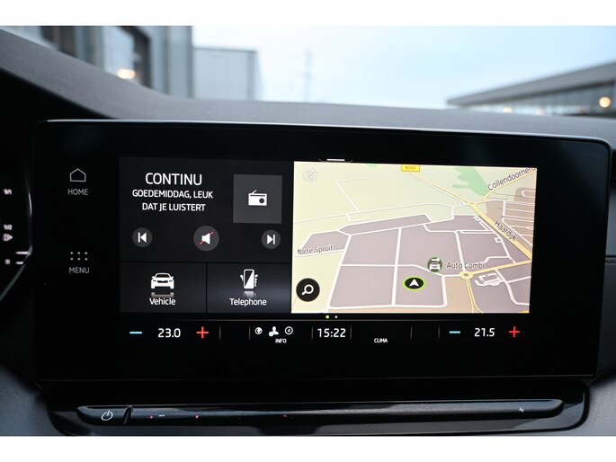 Een gevisualiseerd overzicht van alle belangrijke functies wordt geleverd door het digitale dashboard. Niets achter deze auto blijft verborgen door de achteruitrijcamera. Een veilig gevoel! Je ziet hem niet, maar hij is er wel: de elektrisch inklapbare trekhaak. Bij deze auto is uw smartphone een geavanceerde afstandsbediening. Remote services brengen u overal in contact met uw auto. Gemakkelijk en veilig is de spraakbediening voor het audiosysteem en het full map navigatiesysteem. Daarbij kunt u deze ook bedienen met de knoppen op het stuur. De audio-kwaliteit is geweldig, dankzij de DAB-ontvangst. De uitrusting van deze ŠKODA is met WIFI-hotspot, automatische airconditioning, draadloos opladen, regensensor, cruise control en automatisch dimmende buitenspiegels behoorlijk compleet.