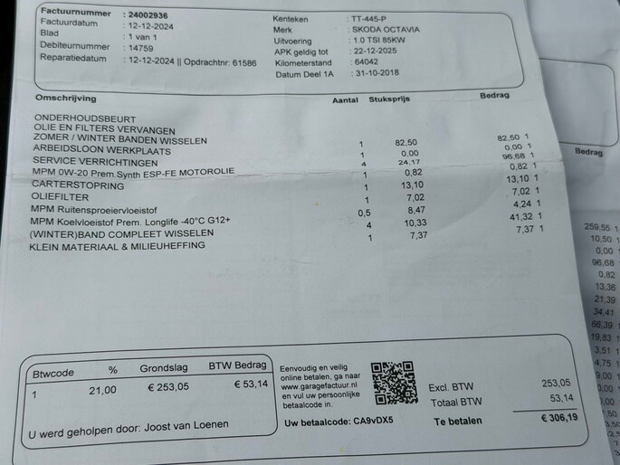 Kilometerstand gecontroleerd