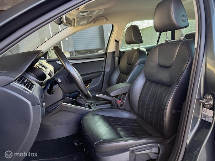 Nette Skoda Octavia met luxe lederen bekleding, Canton sound upgrade, trekhaak en Vredestein all season banden.