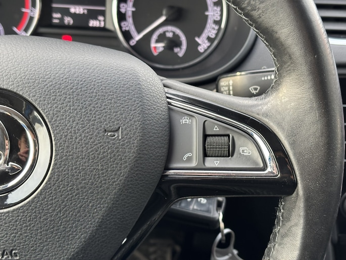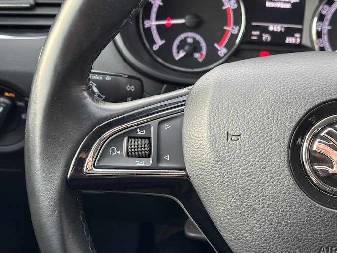 Gemak dient de mens. Dankzij de spraaksturing bedient u de belangrijkste functie met uw stem. Zuinig, veilig en ontspannen op pad: dat kan dankzij het aanwezige navigatiesysteem. Bij de luxe van deze auto hoort ook automatische airconditioning. Smartphones die zonder snoer kunnen opladen halen simpel een volle accu via de draadloze oplaadmogelijkheid voor telefoons. Inparkeren en uitparkeren kost geen enkele moeite dankzij de parkeersensoren. De ŠKODA is standaard voorzien van: regensensor, cruise control, automatisch dimmende buitenspiegels, lederen stuur, centrale deurvergrendeling met afstandsbediening en boordcomputer.
