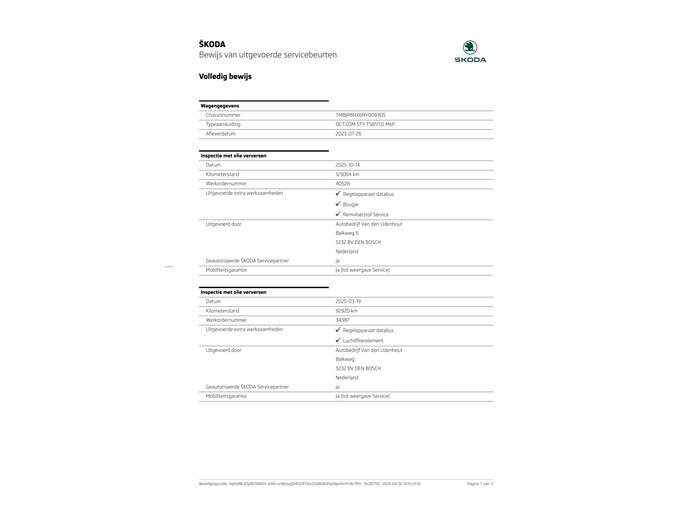 Deze Skoda is bij binnenkomst volledig nagekeken door ons team. Omdat wij 100% vertrouwen hebben in onze werkwijze, leveren wij de auto inclusief het afleverpakket STANDAARD.