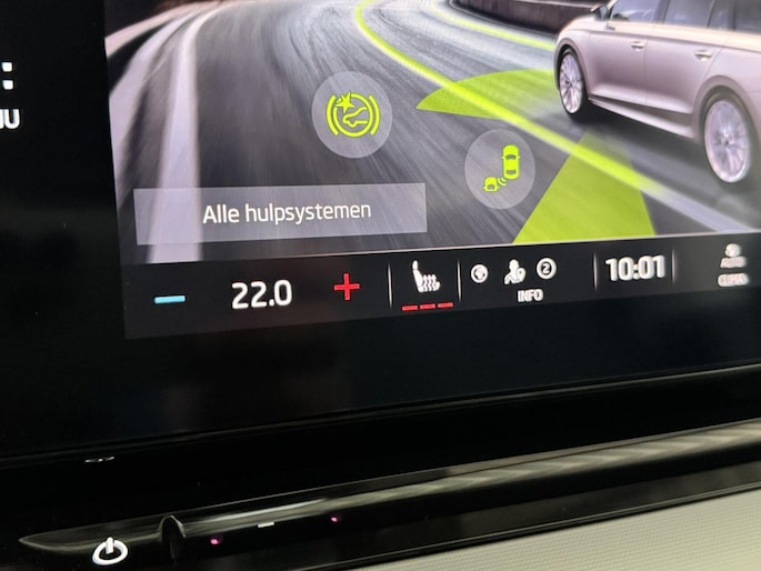 Zoals u mag verwachten van deze Skoda Octavia Combi is hij uitgerust met een reeks aan actieve veiligheidssystemen. Indien u onbedoeld de rijstrook lijkt te verlaten, reageert het Lane-keeping systeem meteen en corrigeert. Forward collision warning waarschuwt voor een kop-staart botsing. Bij concentratieverlies en toenemende vermoeidheid van de bestuurder, geeft de auto een sterk signaal om u weer bij de les te houden. Hierdoor kunnen veel ongelukken voorkomen worden. In deze Skoda vinden we verder een head-up display, dodehoekdetectie, hill hold functie, autonoom remsysteem en bandenspanningcontrolesysteem.