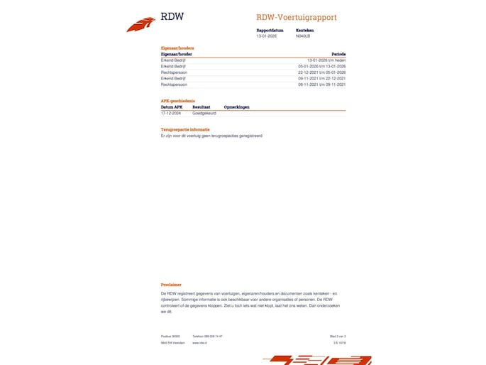 | Wegenbelasting/3mnd | € 199 - € 217 |