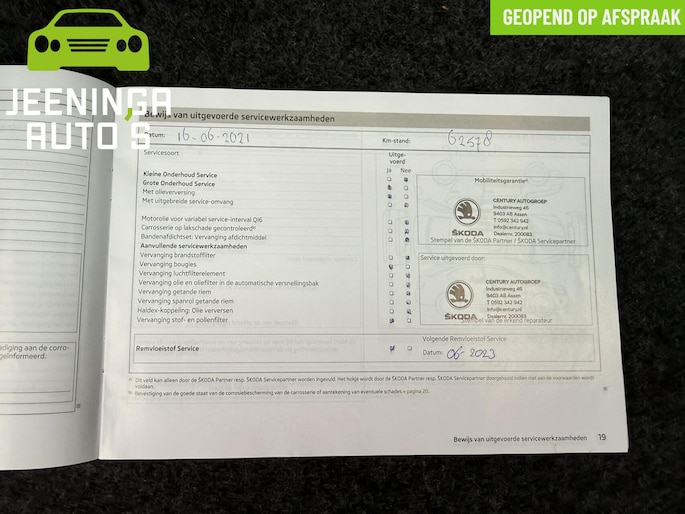 Onderhoudshistorie aanwezig: Ja