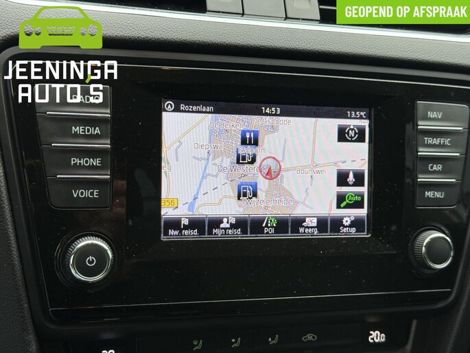 Wegwijs in elke wijk, stad of reisbestemming? Daarvoor zorgt het navigatiesysteem! Dankzij electronic climate control is het interieur behaaglijk warm of verfrissend koel. De audiobediening op het stuur draagt bij aan een veilige rit. Geen afleiding, geen tasten - de knoppen zitten onder uw vingers. De aanwezige parkeersensoren zijn de ultieme hulp om te laten weten hoeveel ruimte er nog is om te manoeuvreren. Het luxeniveau in deze Skoda is niet alleen gericht op comfort, maar ook op uw veiligheid. Tal van sensoren helpen u om de omgeving in de gaten te houden. De automatisch inschakelbare verlichting zorgt dat automatisch de verlichting wordt ingeschakeld als het donker wordt, wat bijvoorbeeld in tunnels erg handig is. En de regensensor zet de ruitenwissers aan zonder dat u eraan hoeft te denken. Deze Skoda is voorzien van cruise control, automatisch dimmende binnenspiegel, isofix-aansluiting, centrale deurvergrendeling met afstandsbediening, boordcomputer en verstelbaar stuur.