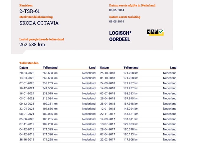 Kilometerstand gecontroleerd
