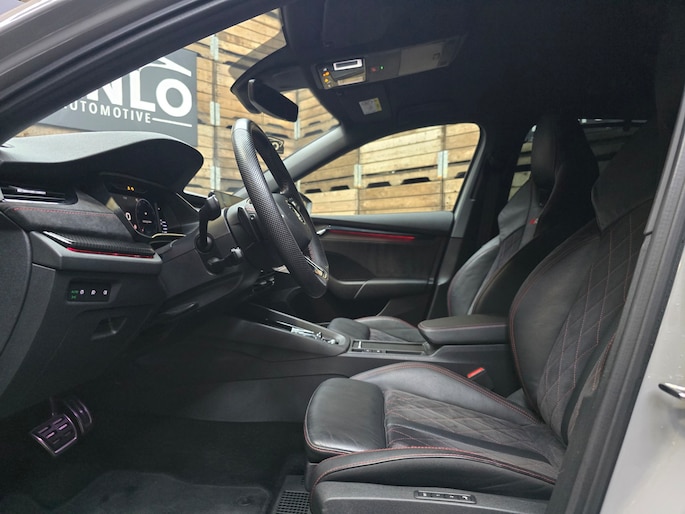 Het digitale dashboard vertelt u onderweg alles dat bijdraagt aan een veilige, efficiënte rit. Onder alle omstandigheden perfect zicht op wat zich achter de auto afspeelt: de achteruitrijcamera zorgt ervoor! Adaptive cruise control is een comfortabele en veilige optie. Het systeem reguleert de snelheid en houdt automatisch afstand tot uw voorligger. Het infotainmentsysteem bedient u met uw vingers of met uw stem, met dank aan de geïntegreerde stembediening. Via uw smartphone en Connected Services checkt u eenvoudig de belangrijke functies van de auto, overal en altijd. Met navigatiesysteem, automatische airconditioning, sportstuur met schakelpaddels, draadloos opladen, DAB ontvangst en regensensor is deze Skoda helemaal compleet.