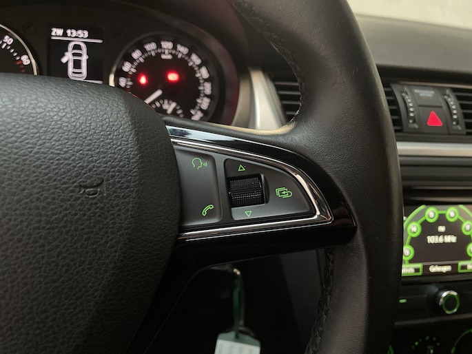 Altijd een deskundige gids aan boord, dankzij het navigatiesysteem. Inparkeren en uitparkeren kost geen enkele moeite dankzij de parkeersensoren. Deze Skoda is bovendien voorzien van cruise control. Dus comfortabel en zuinig rijden verzekerd! Allicht is er in deze auto ook airconditioning. Natuurlijk behoren centrale deurvergrendeling met afstandsbediening en verstelbaar stuur ook tot de uitrusting van deze complete auto.