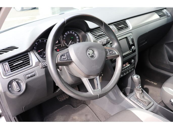 In deze Rapid Spaceback vindt u schakelaars op het stuur om het full map navigatiesysteem te bedienen en het audio-installatiesysteem met DAB-ontvangst. Of het buiten nu warm is of koud, dankzij electronic climate control is het binnen altijd behaaglijk. Kom-maar-kom-maar...ho! Zo eenvoudig is het voordeel van parkeersensoren. En zo behulpzaam! De cruise control levert een mooie, gelijkmatige koers. Dat rijdt prettig. U bent in deze ŠKODA ook voorzien van automatisch dimmende binnenspiegel, centrale deurvergrendeling met afstandsbediening, boordcomputer en verstelbaar stuur.