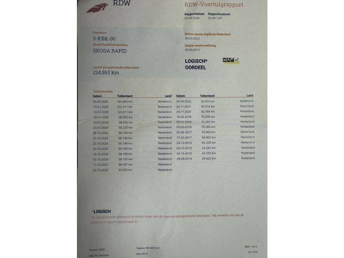 Kilometerstand gecontroleerd