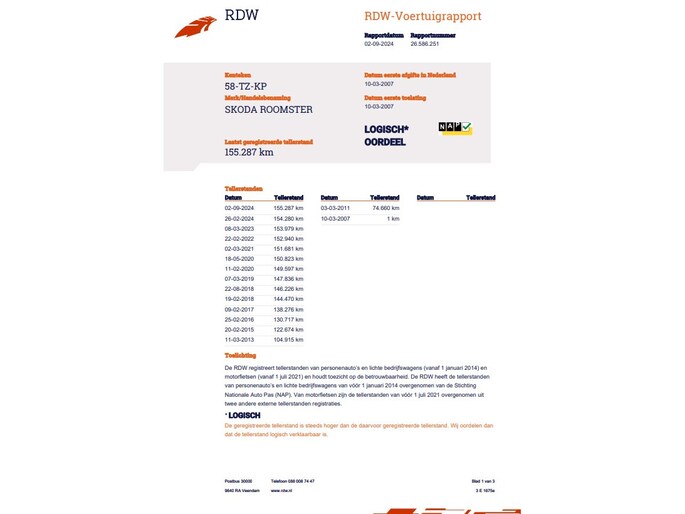 Kilometerstand gecontroleerd