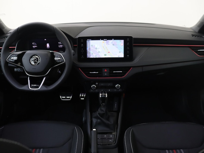 Daarnaast is deze Scala standaard al uitgerust met bijvoorbeeld sportstoelen, sportstuurwiel, zwarte grille, panoramisch dak, full LED Matrix koplampen, achteruitrijcamera, drive mode select, getint glas, 10” virtual cockpit, keyless entry, elektrisch te openen en sluiten achterklep, 17” lichtmetalen velgen, draadloze Android Auto & Apple Carplay, startknop, climate control met 2 klimaatzones, middenarmsteun voor, 8,25” multimediasysteem, digitaal dashboard, parkeersensoren voor en achter, cruise control, elektrische ramen voor en achter, DAB, airconditioning, bluetooth, lane assist etc.