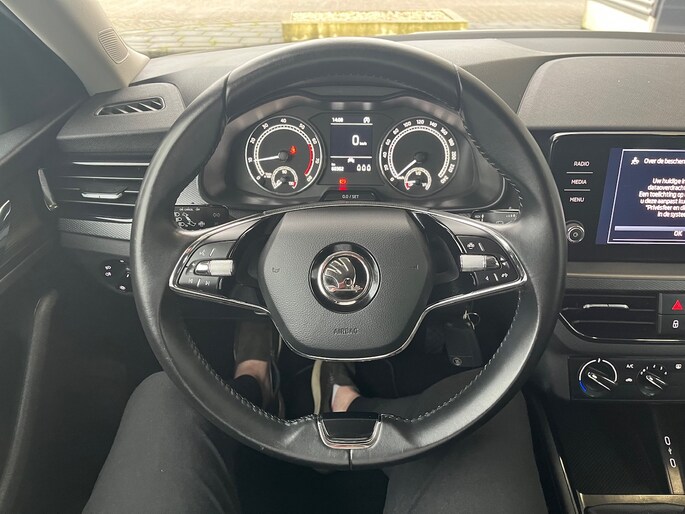 Deze ŠKODA Scala staat garant voor vele veilige en comfortabele kilometers. De aandrijving van deze ŠKODA wordt verzorgd door een driecilinder benzinemotor en een handgeschakelde zesversnellingsbak. Natuurlijk behoren 16 inch lichtmetalen velgen, LED koplampen, dakspoiler, in hoogte verstelbare passagiersstoel, donker getint glas achter en in delen neerklapbare achterbank ook tot de uitrusting van deze complete auto.
