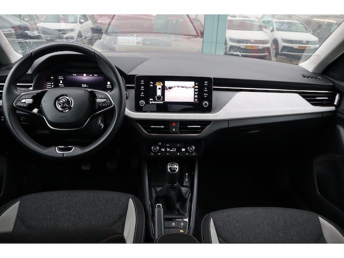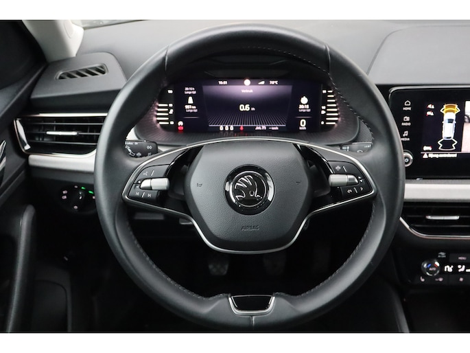 Deze Škoda Scala staat voor u klaar. Een geweldige, nog jonge occasion die goed is voor gemakkelijk nog een tonnetje of twee op de teller. Deze Škoda heeft een benzinemotor die zuinig is, maar toch hoge prestaties levert. Een handige voorziening op deze auto is de elektrische achterklep die u op afstand kunt openen. In deze auto profiteert u onder andere ook van: LED koplampen, in hoogte verstelbare passagiersstoel, extra getint glas, in delen neerklapbare achterbank, LED-achterlichten en verstelbare lendensteunen. Met de achteruitrijcamera ziet u wat er achter de auto gebeurt. Zo rijdt u moeiteloos achteruit. Deze Škoda Scala is 'connected'. Belangrijke functies worden permanent gemeten en zijn uit te lezen via een speciale app, ook op afstand. U verwacht natuurlijk electronic climate control in deze auto, en die is er dan ook. Audiobediening op het stuur is aanwezig. Gemak en veiligheid voor alles, toch? Geniet van een ruime selectie digitale radiostations met de DAB-ontvanger. U bent in deze Škoda ook voorzien van cruise control, keyless entry, automatisch dimmende binnenspiegel, lederen stuur, boordcomputer en lederen versnellingspook. De intelligente veiligheidssystemen in deze auto waken continu over uw veiligheid. Onderweg zorgt verkeersborddetectie ervoor dat u geen waarschuwingsbord mist. Het Lane-keeping systeem garandeert dat u zich niet onverhoeds buiten de lijnen van de rijstrook begeeft. Het forward collision warning-systeem is constant alert en detecteert via sensor de afstand tot voorliggers. Wordt die te klein, dan volgt een automatische waarschuwing. Bovenop deze veiligheidsfeatures heeft deze Škoda bovendien hill hold functie, vermoeidheidsherkenning, autonoom remsysteem en bandenspanningcontrolesysteem. U bent van harte welkom om deze auto te komen bekijken, neemt u snel contact met ons op?