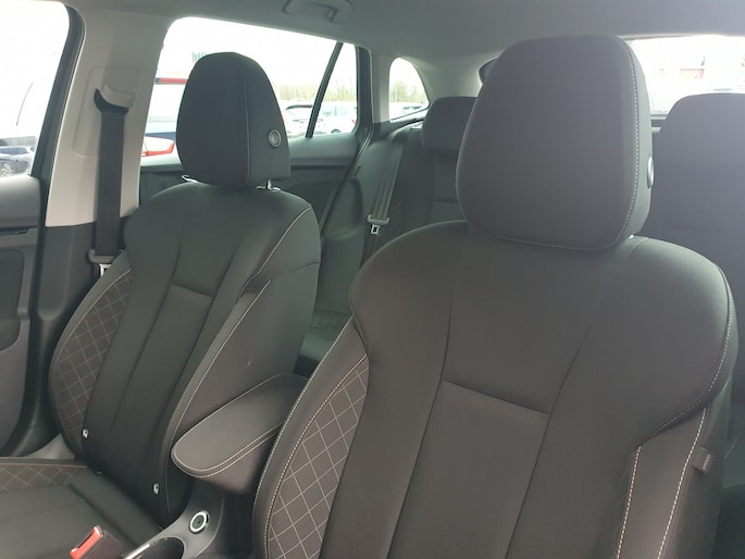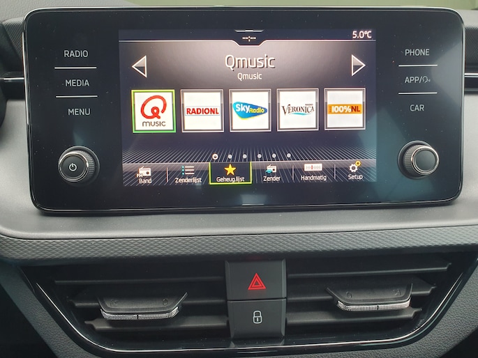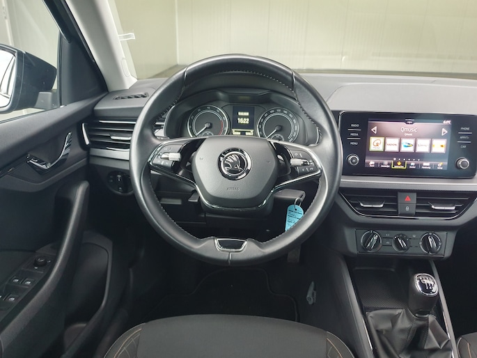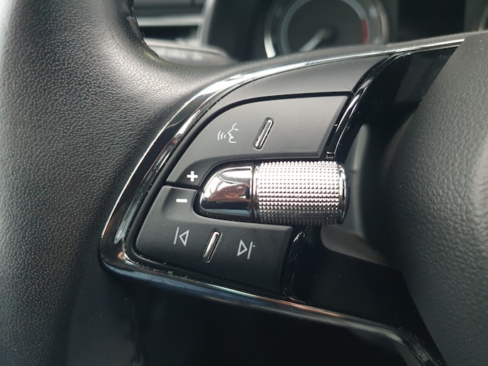 Deze ŠKODA Scala is voorzien van remote services. Via uw smartphone bedient u diverse functies ook op afstand en krijgt u informatie over de status van uw auto. Het audiosysteem met dab-radio biedt glasheldere geluidskwaliteit, u bedient dit veilig via het stuurwiel. U bedient de cruise control eenvoudig zonder uw handen van het stuur te halen. Het spreekt voor zich dat u in deze auto ook airconditioning aantreft. Ook lederen stuur, centrale deurvergrendeling met afstandsbediening en boordcomputer horen tot de voorzieningen op deze auto.