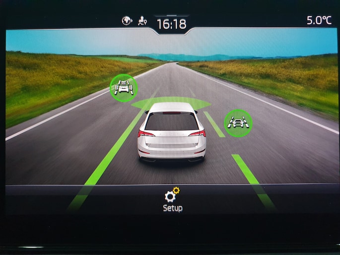 In de ŠKODA Scala heeft uw veiligheid en die van uw omgeving prioriteit. Het Lane-keeping systeem zorgt voor een automatisch constante positie binnen de rijstrook. Afdwalen is uitgesloten. Voor meer veiligheid detecteert deze auto het risico van een aanrijding tijdig via de forward collision warning. U bent mede dankzij autonoom remsysteem en bandenspanningcontrolesysteem steeds veilig onderweg.