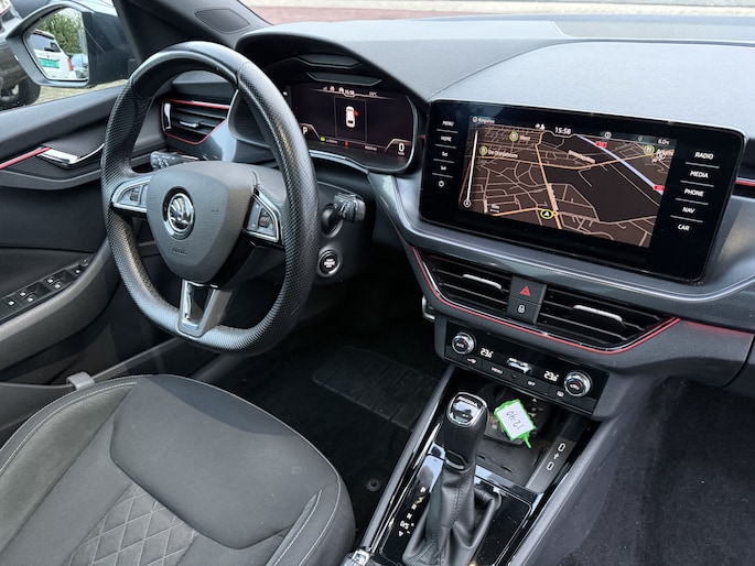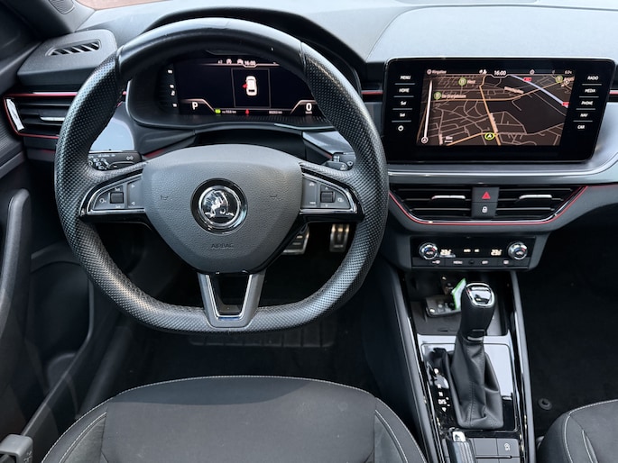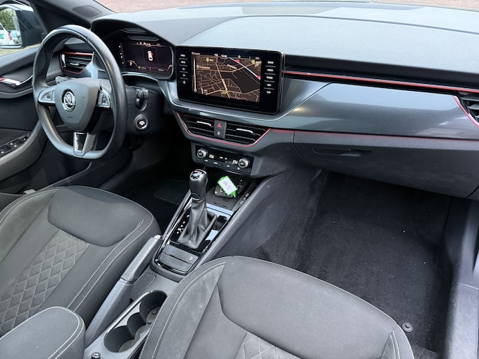 Het is een auto die er nog jaren tegenaan kan, deze ŠKODA Scala die 80265 kilometer op de teller heeft staan. De aandrijving komt voor rekening van een benzinemotor en een automatische transmissie. Chauffeur en bijrijder zitten stabiel in de scherpe bochten door de sportstoelen. In weer en wind een cabriosensatie? Dat kan met het riante glazen panoramadak. Bij de rijke uitrusting horen ook 17 inch lichtmetalen velgen, Full LED koplampen, dakspoiler, donker getint glas achter, in delen neerklapbare achterbank en LED-achterlichten.