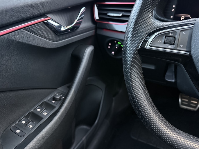 Pragmatisch en veilig als deze auto is, beschikt hij over diverse veiligheidssystemen. Het Lane-keeping systeem zorgt dat u mooi binnen de lijntjes blijft. Ongemerkt buiten de rijstrook komen is er niet meer bij. Het risico van een kop-staartbotsing wordt aanzienlijk verminderd door de forward collision warning. Bij concentratieverlies van de bestuurder geeft vermoeidheidsherkenning automatisch een waarschuwingssignaal. Bovenop deze veiligheidsfeatures heeft deze ŠKODA bovendien hill hold functie, autonoom remsysteem en bandenspanningcontrolesysteem.