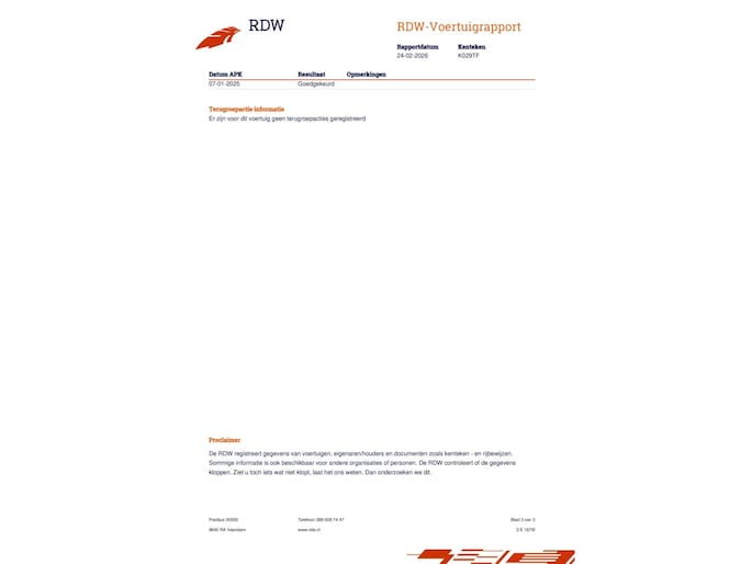 Kilometerstand gecontroleerd