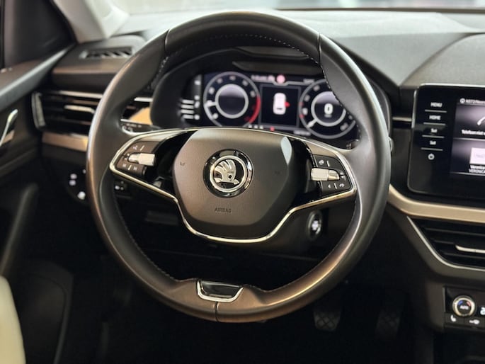 Dankzij het digitale dashboard in deze auto kan u de interface van uw cockpit personaliseren. Pech oplossen en zelfs voorkomen? Gaat eenvoudig. Via Connected Services heeft u alle data in de hand, gewoon op de smartphone! In deze auto beschikt u natuurlijk over een navigatiesysteem met harde schijf. Het audio-installatiesysteem met DAB-radio biedt glasheldere geluidskwaliteit. U bedient dit veilig via het stuurwiel. Met de automatische airconditioning selecteert u de gewenste temperatuur. Het systeem doet de rest. Soms heeft u meer parkeerruimte dan u denkt. Maar soms ook niet. De parkeersensoren vertellen precies hoeveel. De Skoda is standaard voorzien van: regensensor, cruise control, automatisch dimmende binnenspiegel, lederen stuur, isofix-aansluiting en centrale deurvergrendeling met afstandsbediening.